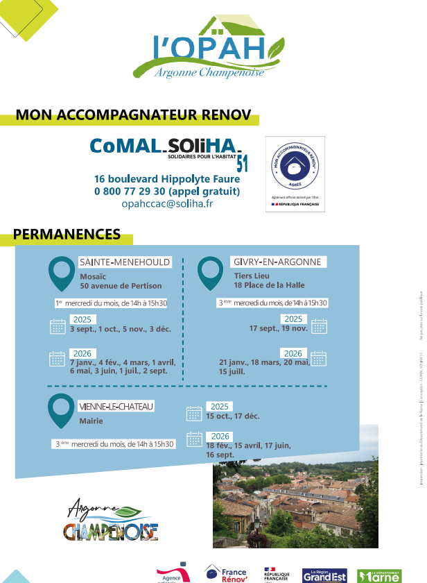 L’OPAH est menée sur les 60 communes de la Communauté de Communes de l’Argonne Champenoise.